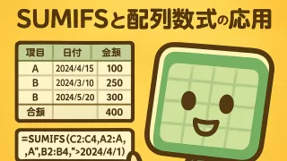 Excel小技part3 Excelで複雑な条件のデータを自動集計!SUMIFSと配列数式の応用 ExcelのSUMIFS関数と配列数式を組み合わせれば、OR条件や動的期間集計など複雑な条件も自動集計可能!実務で役立つ具体例とサンプルデータ付きで解説します。 2025.08.11 Excel小技part3