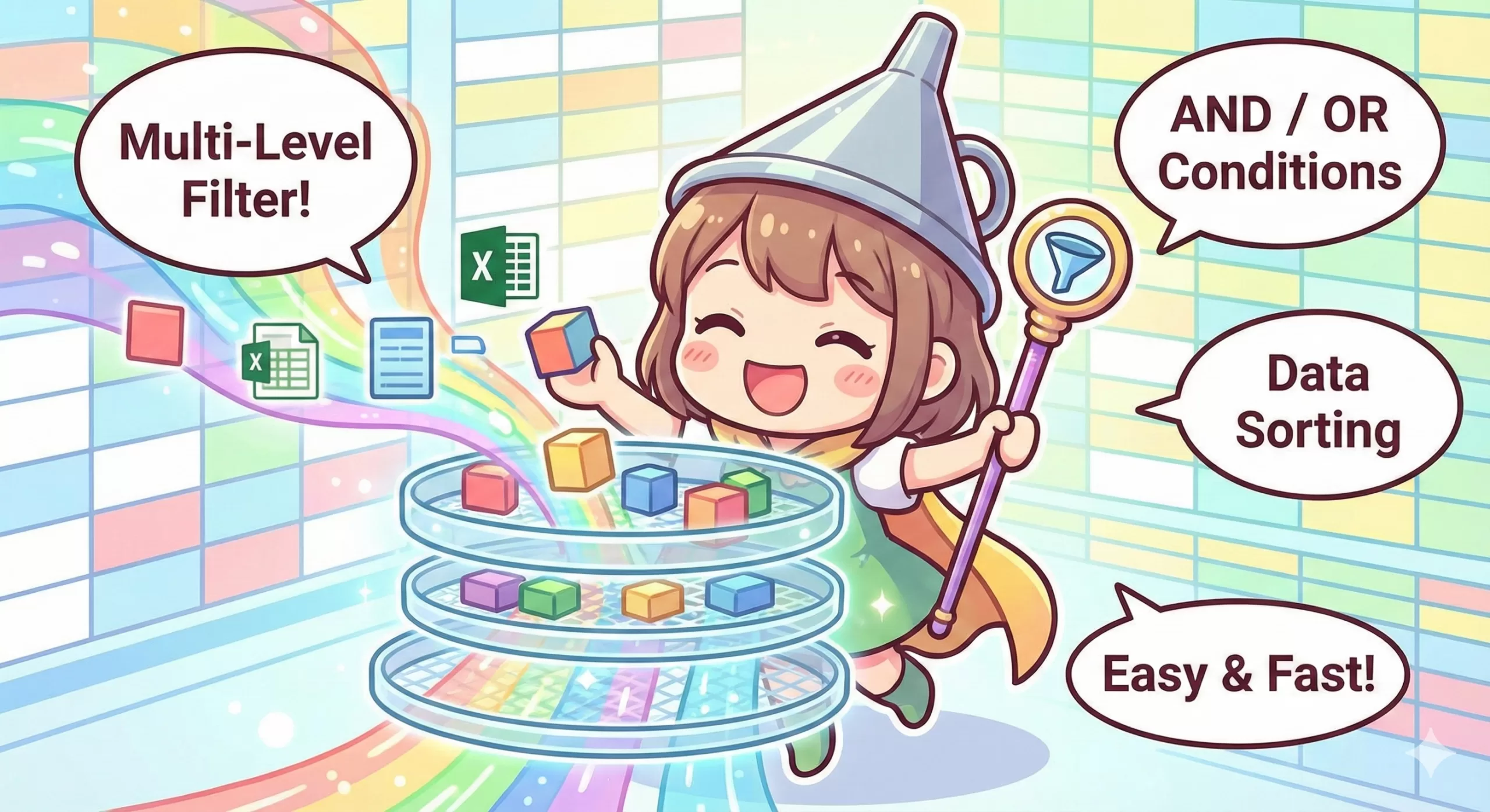 Excelのフィルター機能は、実は「重ね掛け(多段)」こそが真骨頂です。この記事では、複数の列を使った絞り込みから、1つの列で複数の条件を指定するテクニックまで、実務ですぐに使える方法をわかりやすく解説します。